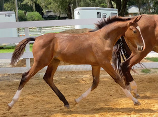 Her dam, Malibu, has spent most of her life as a childrens hunter and “worth her weight in gold” lesson horse. She has a very pretty type and phenomenal temperament that she passes to her foals.