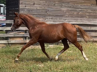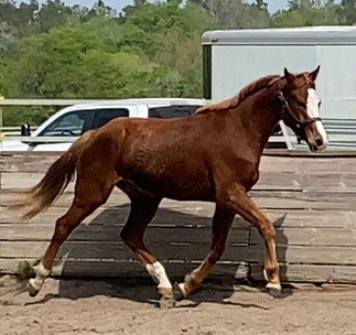 Very well developed young gelding. Big, lofty trot, balanced, uphill canter and a very nice type. Charming disposition and brave! Will mature to 16.3 hh+.