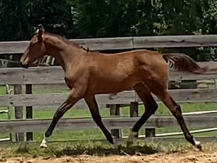 She is nicely started under saddle and an amateurs dream. She is intelligent, works hard to please her rider, and loves her rider. She was a breeze to start and has been very easy to bring along.