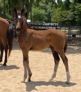 This is a spectacular filly from our best mare. We will gladly retain this super filly if she's still here at breeding age! She impressed the inspectors at her Hanoverian foal inspection, awarding her the TOP FILLY of the day. She is one of the best we have produced and truly a prospect for the upper levels. We can't wait to watch this one develop.'